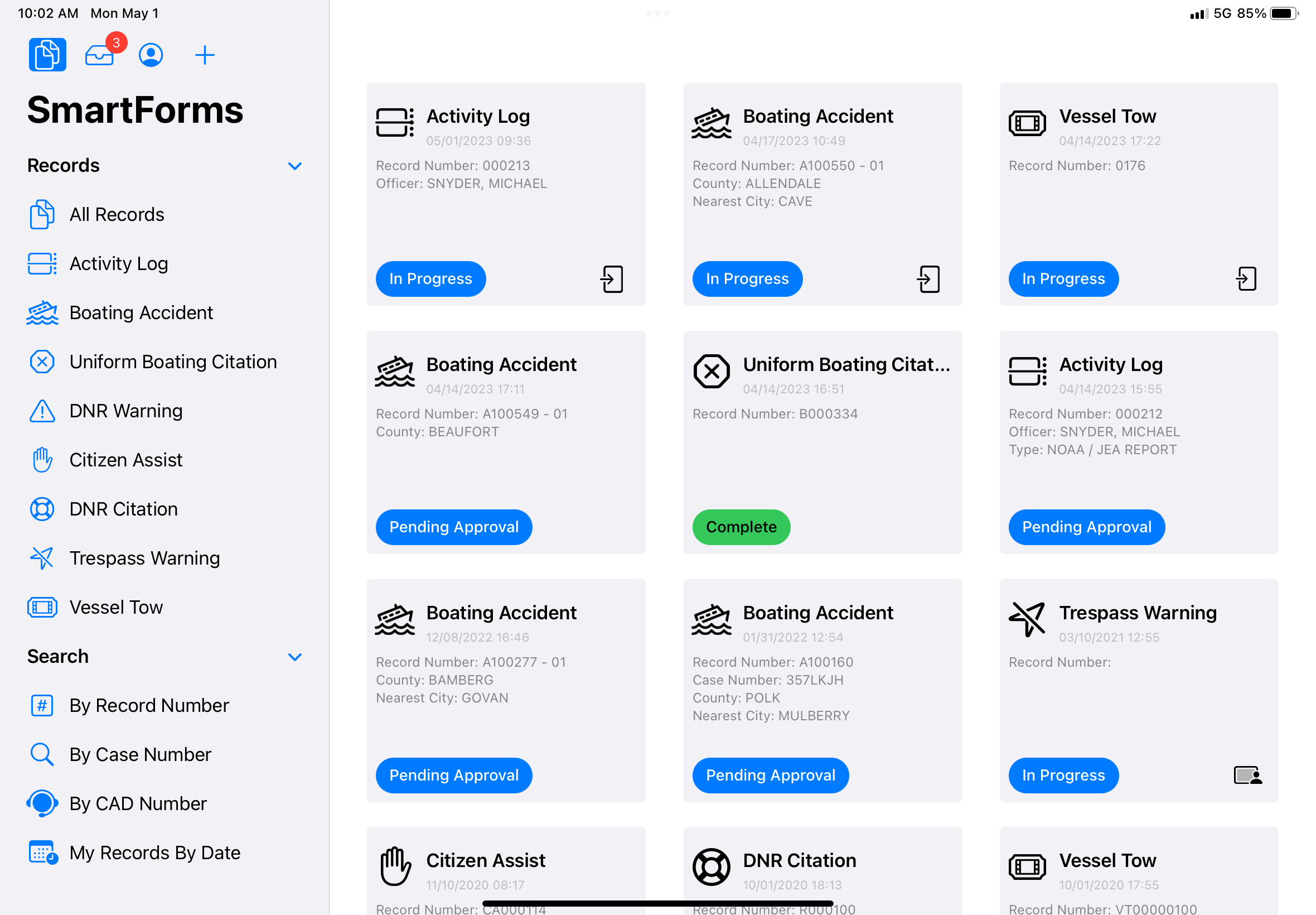 SmartCOP makes it simple for conservation law enforcement agencies to capture, manage, and submit boating accident reports directly to the U.S. Coast Guard’s Boating Accident Report Database (BARD) system.